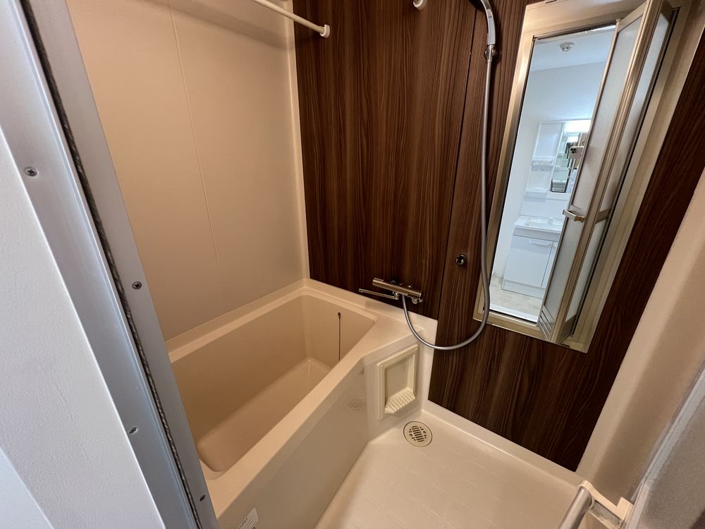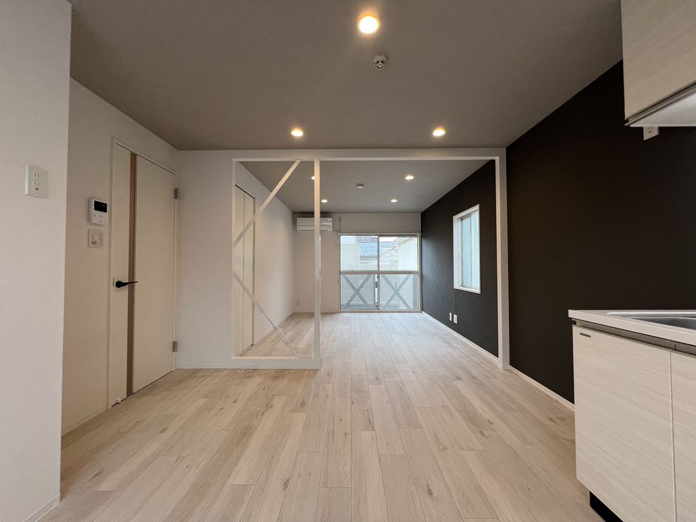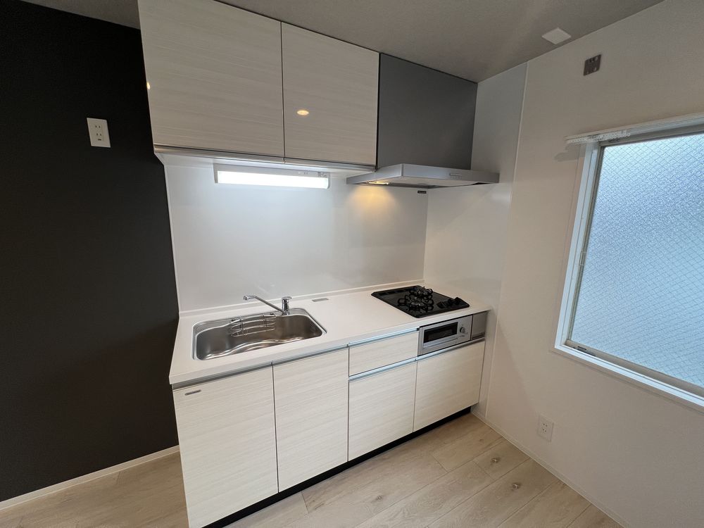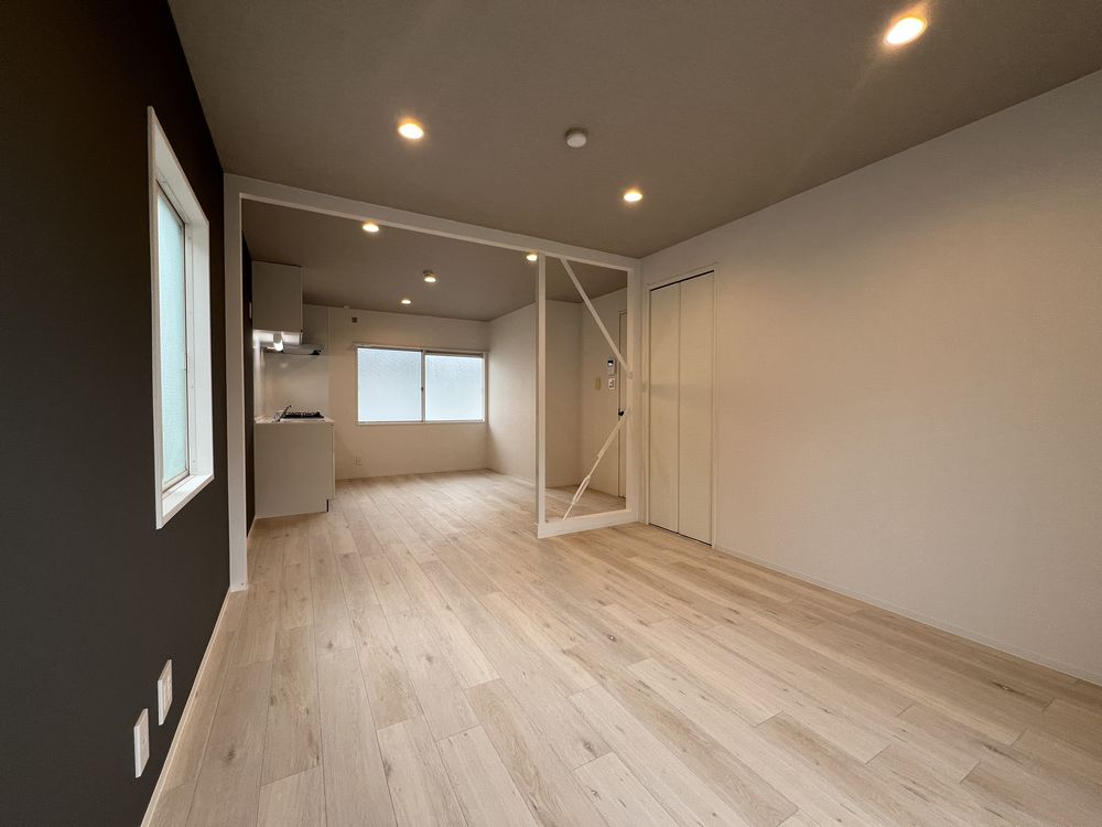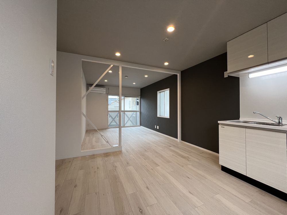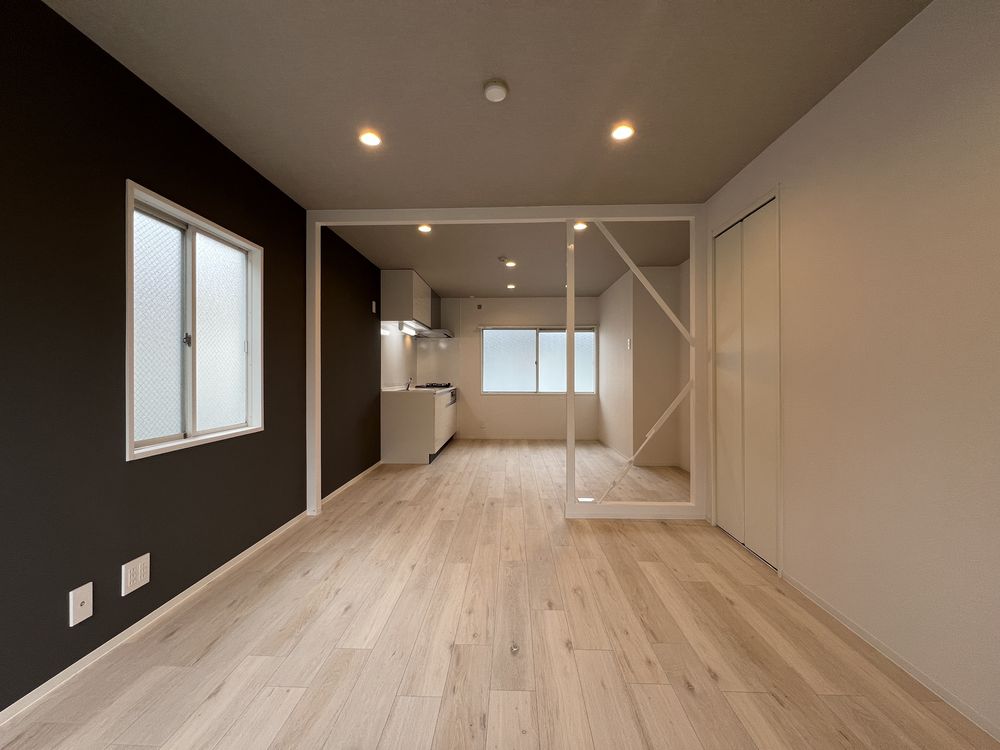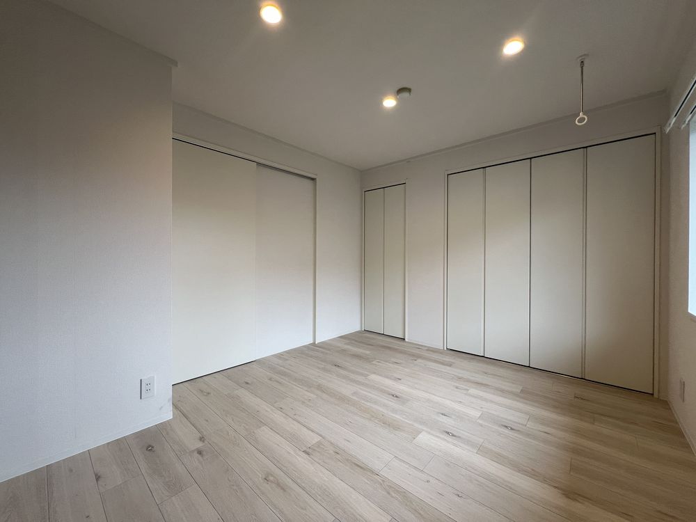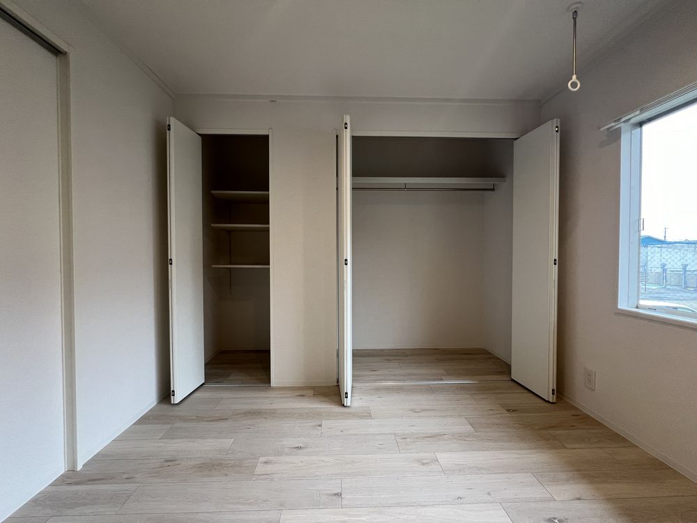 スカッとした晴れの空もいいけれど、くもり空から降る優しい光もすてき。ここは白を基調とした壁にグレーのアクセントでコーディネートした、清潔感のある空間です。無彩色ながら素材感のある壁紙で温かさもプラスしました。落ち着いた色調の中、忙しい日々を離れ心穏やかにお過ごしください。