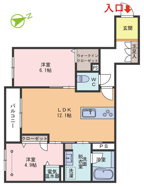 - LDK12.1 洋室6.1 洋室4.9