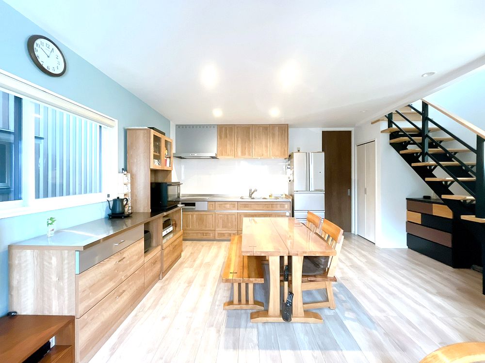 明るい木目調の室内デザイン